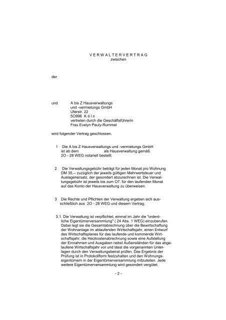 Muster Verwaltervertrag Weg Strothe Hausverwaltung Gmbh